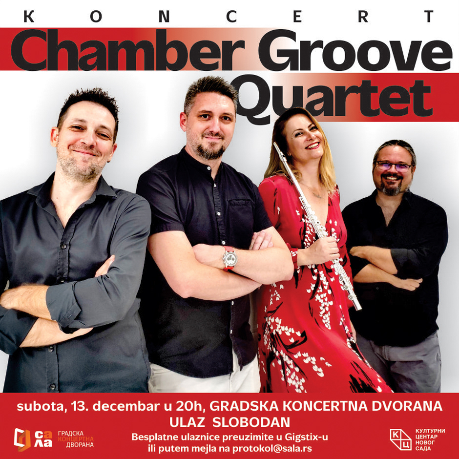 Gradska koncertna dvorana ugostiće u subotu, 13. decembra, u 20 časova Chamber Groove Quartet – ansambl koji donosi sveže muzičko iskustvo na raskršću klasične tradicije i džez improvizacije.
