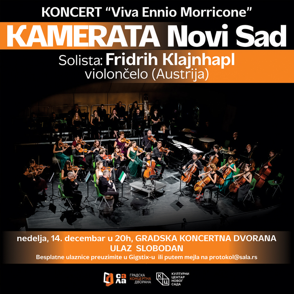 Nakon velikog interesovanja i rasprodatog koncerta u julu, u nedelju, 14. decembra, sa početkom u 20 časova, poklanjamo novosadskoj publici još jedno nezaboravno muzičko veče – omaž jednom od najvećih kompozitora filmske muzike svih vremena, Eniju Morikoneu.